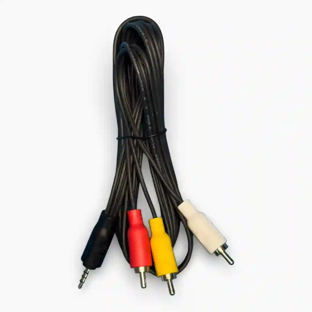 Conectores de salida: 3 conectores tipo RCA macho (colores Rojo, Amarillo y Blanco).