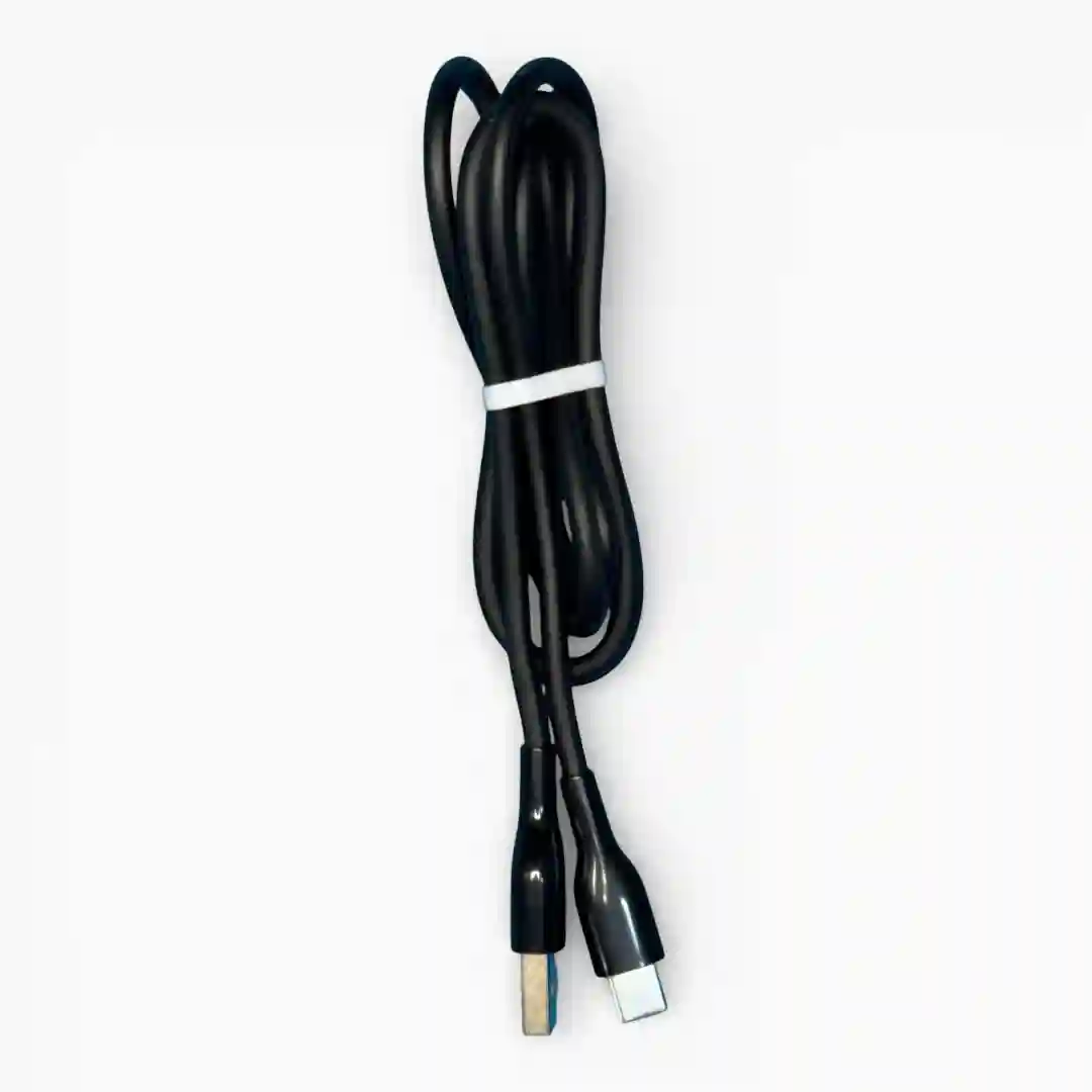 Cable de datos y carga de alto rendimiento con interfaz Tipo C, diseñado para ofrecer una conexión estable y una durabilidad superior. Su estructura externa cuenta con un recubrimiento de malla trenzada de alta densidad en color negro, lo que previene enredos y protege los conductores internos de daños mecánicos por flexión.