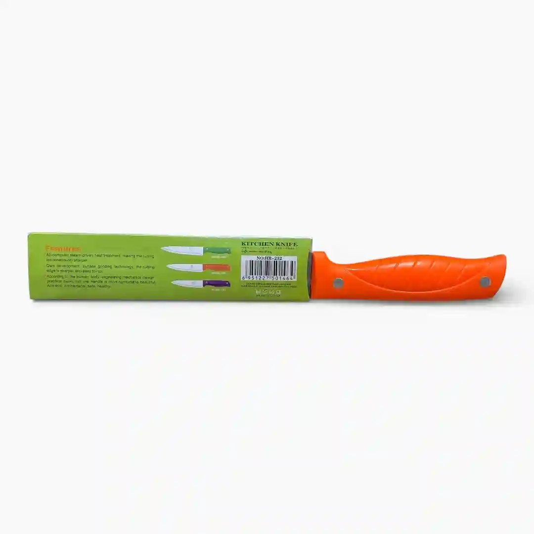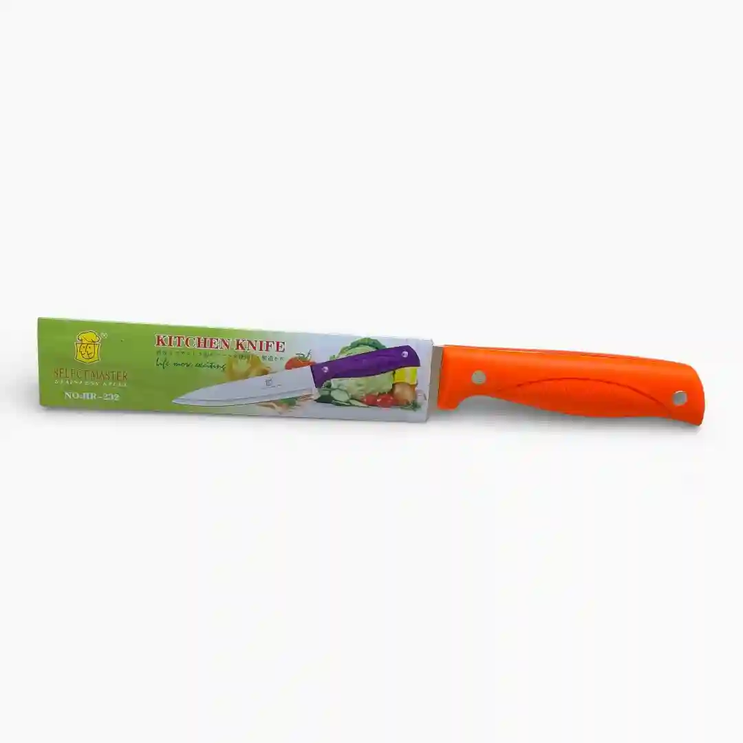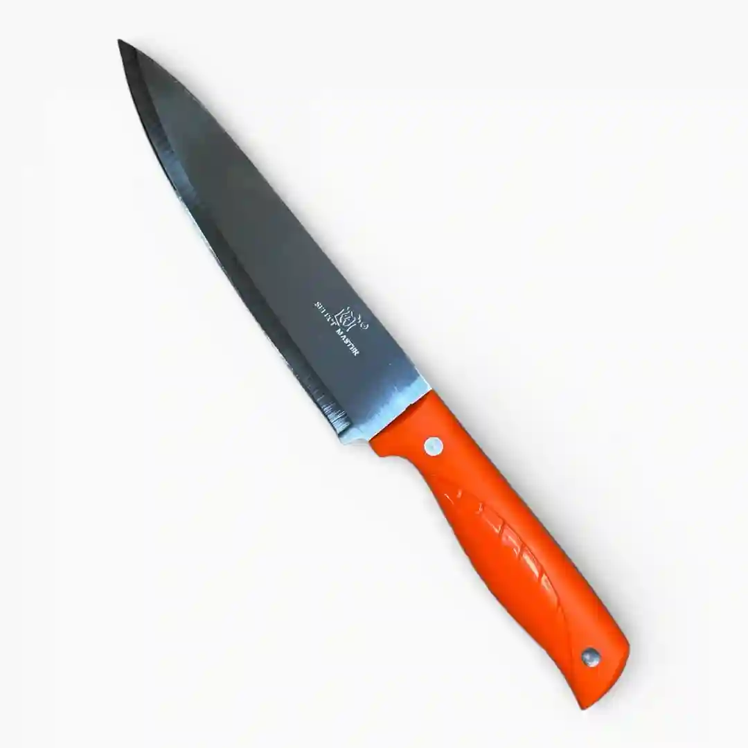 Cuchillo de cocina profesional diseñado para ofrecer cortes precisos y una experiencia culinaria más emocionante. Este utensilio destaca por su hoja de acero inoxidable de alta calidad y un mango ergonómico de color vibrante, ideal para el uso diario en diversas tareas de preparación de alimentos.
