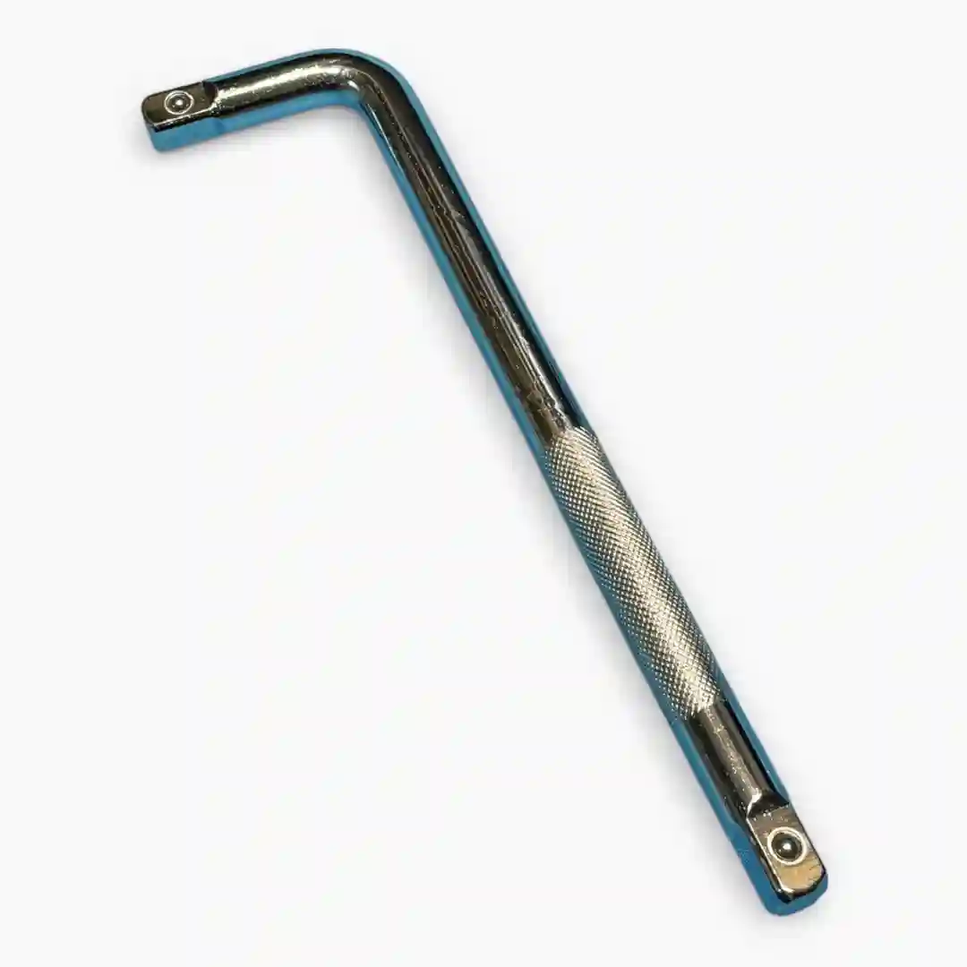 Herramienta manual de alto rendimiento diseñada para la aplicación de torque y fuerza en trabajos de mecánica automotriz e industrial. Esta llave tipo «L» cuenta con una estructura robusta fabricada en metal con acabado cromado, proporcionando resistencia a la corrosión y una larga vida útil. Su diseño ergonómico incluye una zona de agarre moleteada para asegurar un manejo firme y seguro durante la operación.
