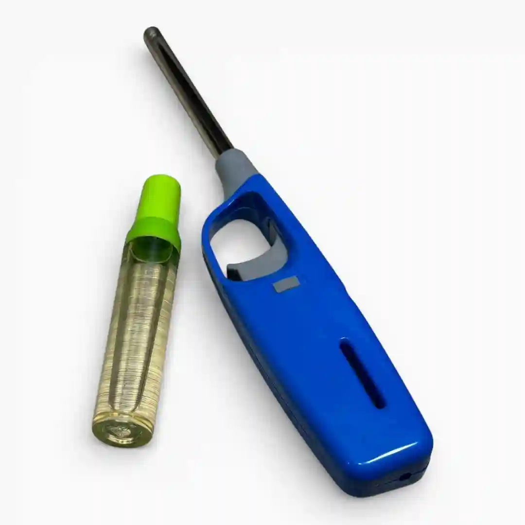 Kit de encendido doméstico de alta fiabilidad que incluye un encendedor de cuello extendido y un cartucho de recarga adicional. Este conjunto está diseñado para ofrecer seguridad y comodidad al encender estufas, velas, hornos o parrillas, manteniendo una distancia segura de la llama. El diseño ergonómico del encendedor se complementa con una recarga de gas de color vibrante, asegurando una vida útil prolongada del producto.