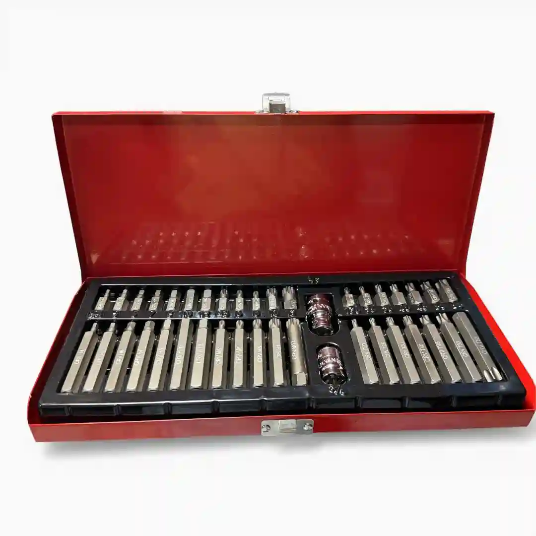 Juego profesional de 40 llaves hexagonales diseñado para ofrecer una evolución en potencia y rendimiento. Este conjunto integral está fabricado en acero al cromo vanadio (CR-V), garantizando máxima resistencia y durabilidad en trabajos de alta exigencia. El kit viene organizado en una caja de hierro robusta que facilita el transporte y la protección de cada pieza.