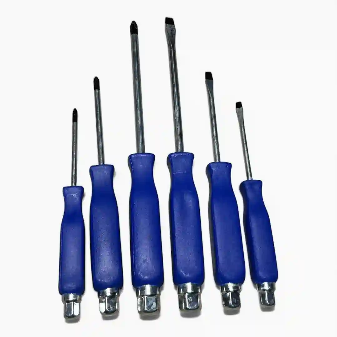 Configuración: 3 Destornilladores de pala (planos) y 3 Destornilladores de estrella (Phillips)