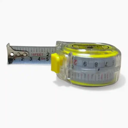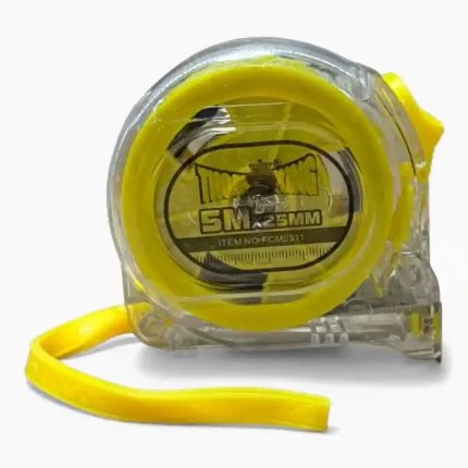Cinta métrica profesional de alta precisión diseñada para trabajos de medición exigentes en construcción, carpintería y proyectos de ingeniería. Su carcasa robusta en color amarillo de alta visibilidad cuenta con un diseño ergonómico para un agarre firme y cómodo. La hoja metálica ofrece una lectura clara y duradera, facilitando la toma de medidas en distancias largas con estabilidad y eficiencia.