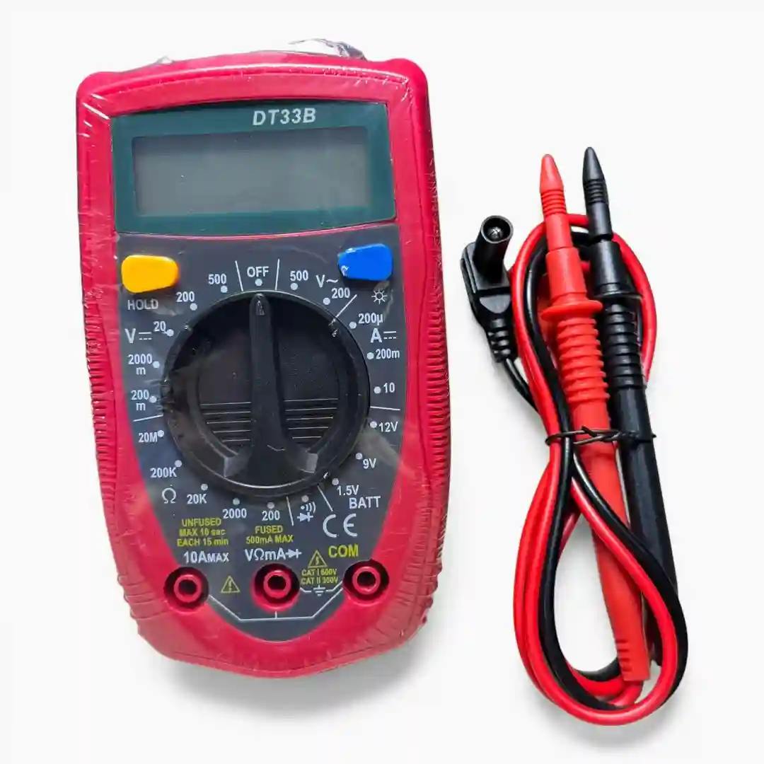 El Multímetro Digital serie DT33 es una herramienta de medición electrónica de alta precisión y diseño compacto, ideal para profesionales y aficionados a la electrónica. Este dispositivo permite realizar diagnósticos precisos en circuitos eléctricos, componentes y baterías, facilitando el mantenimiento y la reparación de equipos con total seguridad.