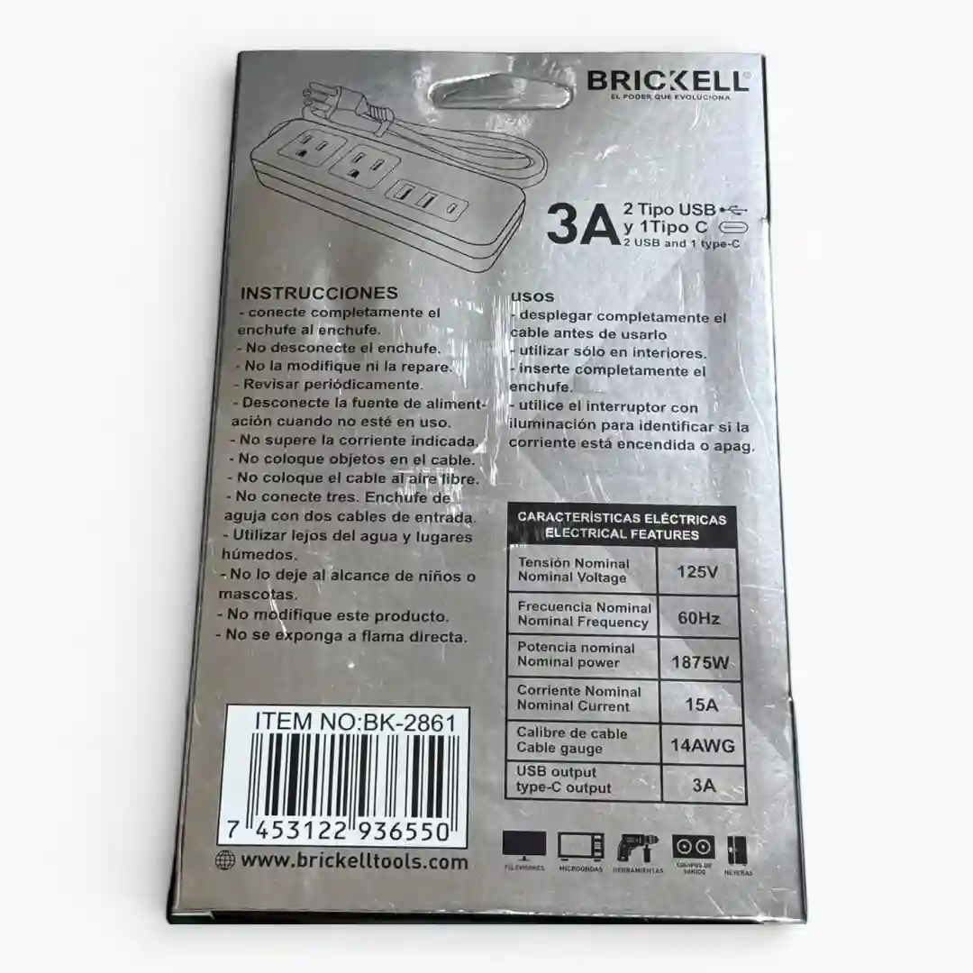 MULTITOMA BRICKELL + TIPO C + USB BK-2861