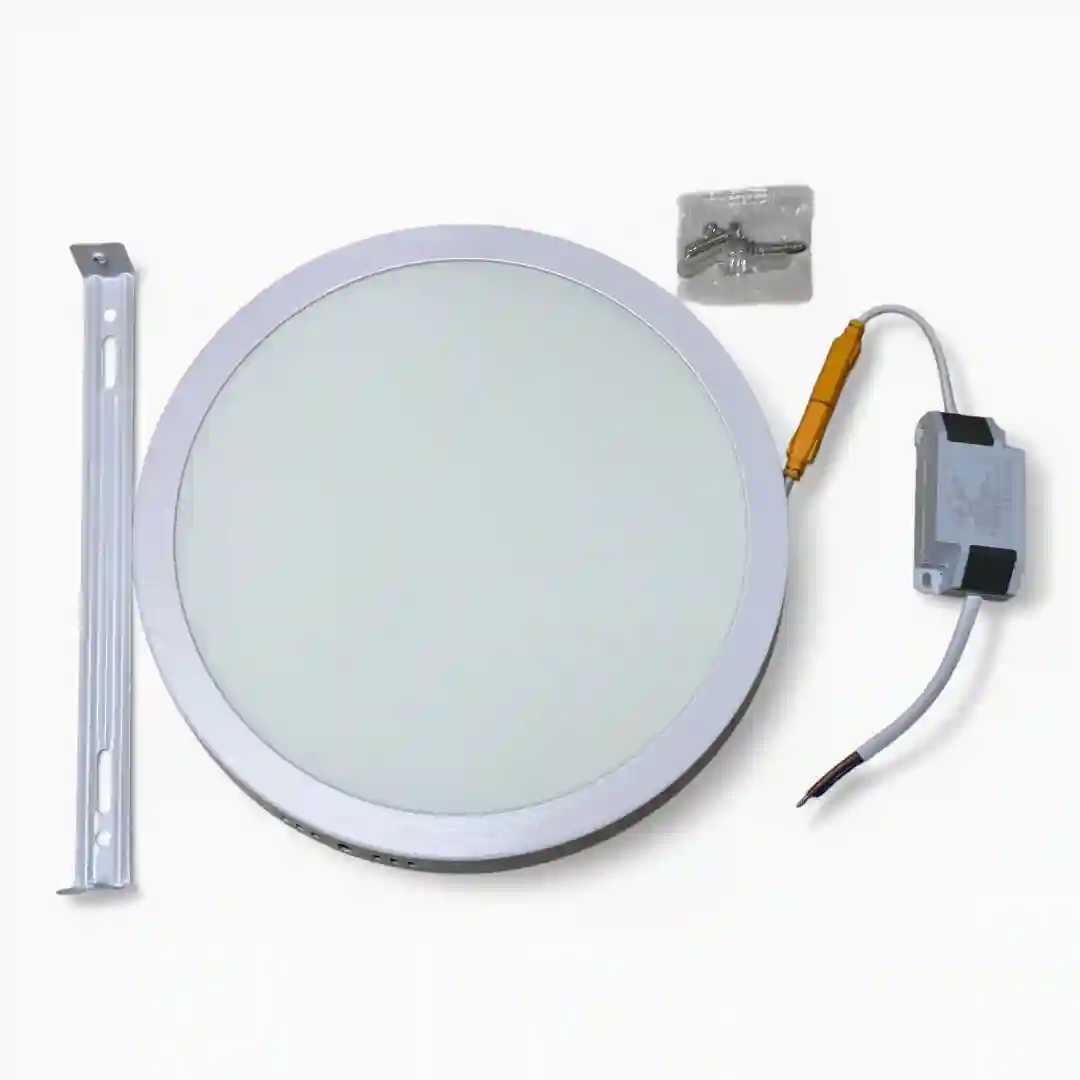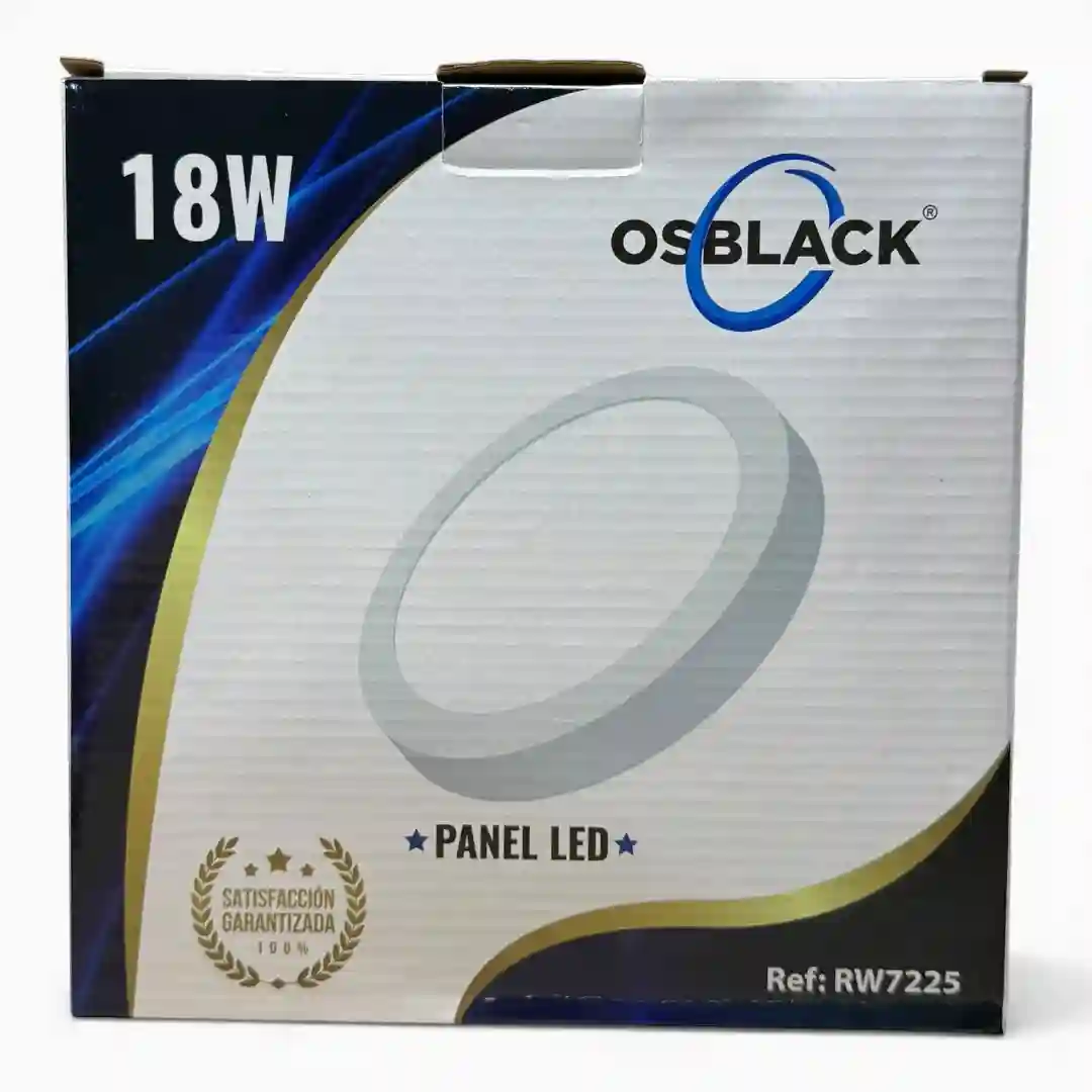 Luminaria tipo panel LED de sobreponer con diseño circular, ideal para una iluminación uniforme y eficiente en espacios interiores. Este sistema de iluminación destaca por su facilidad de instalación y su acabado estético, respaldado por la calidad de la marca OSBLACK.