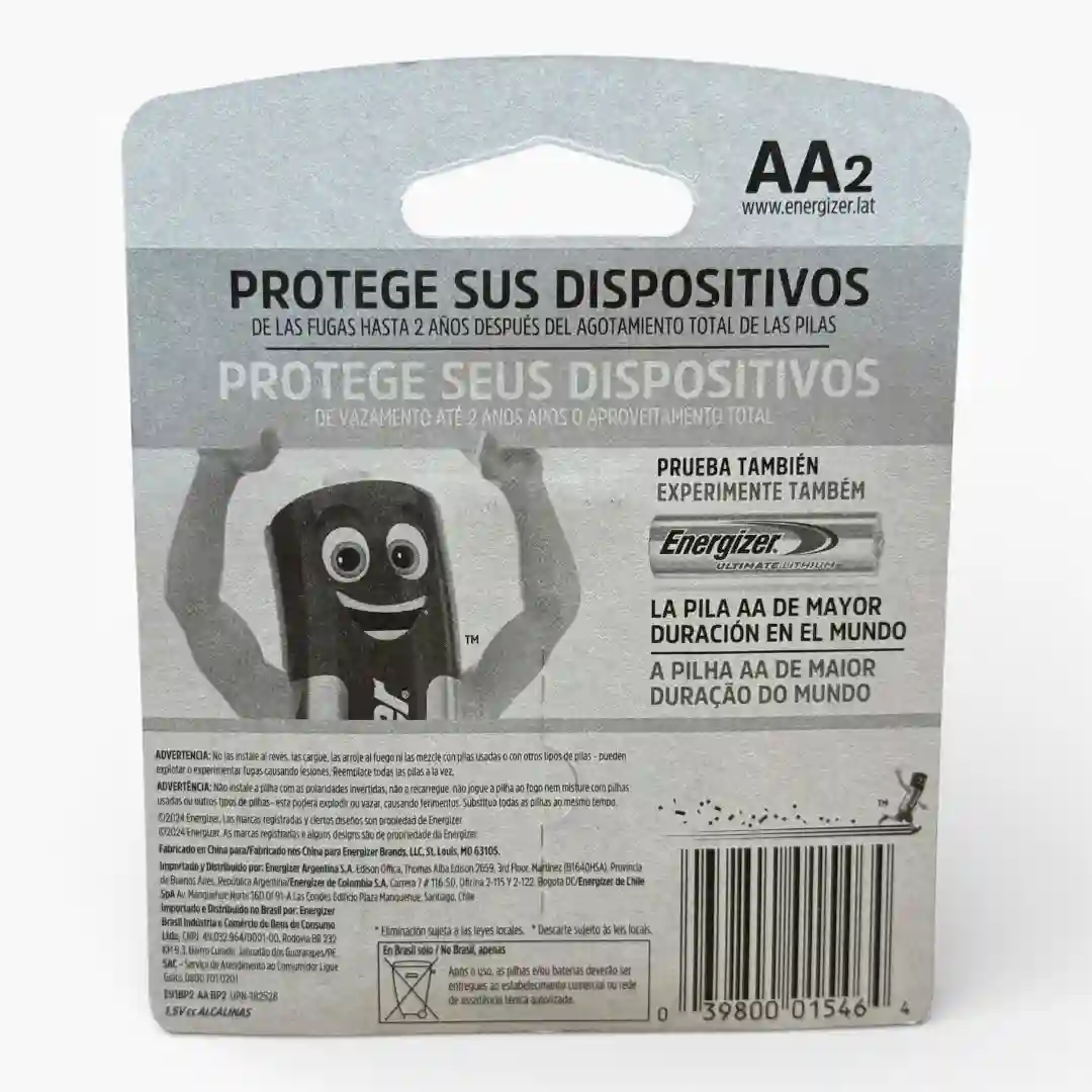 Pilas alcalinas de alto rendimiento diseñadas para proporcionar energía confiable y de larga duración a una amplia gama de dispositivos electrónicos cotidianos. La tecnología de Energizer garantiza un flujo de potencia constante, protegiendo sus equipos contra fugas y asegurando un funcionamiento óptimo incluso en dispositivos de alto consumo.