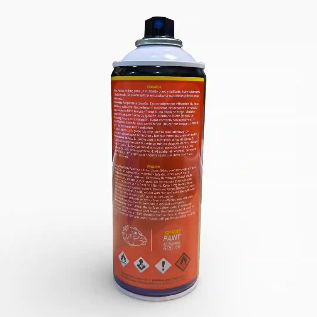 Pintura en aerosol para todo propósito diseñada para ofrecer un acabado de laca transparente brillante con excelente cubrimiento y secado rápido. Este producto es apto para ser aplicado en cualquier superficie, incluyendo plástico, metal y madera. Su fórmula profesional garantiza resultados claros y brillantes para diversas aplicaciones decorativas o de mantenimiento.
