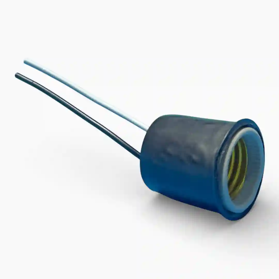 Porta bombillo o plafón colgante de diseño sencillo y funcional, fabricado con materiales resistentes al calor para garantizar una conexión eléctrica segura. Su estructura compacta y cables pre-pelados facilitan una instalación rápida en diversos entornos decorativos o de iluminación general.