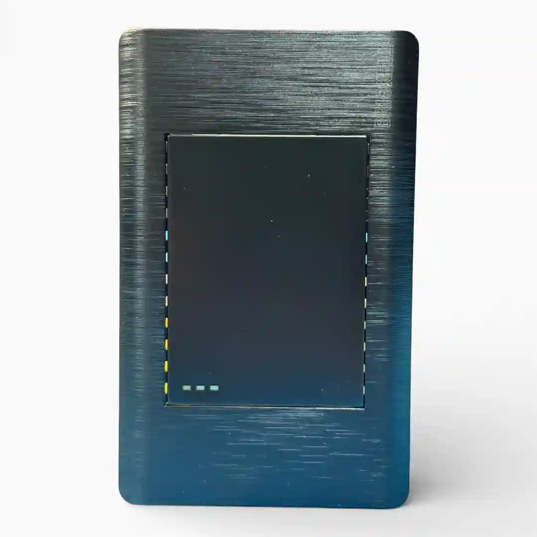 El suiche sencillo BRICKELL modelo BK-2176 es una pieza de alta gama diseñada para proyectos que buscan un equilibrio entre estética minimalista y resistencia. Este dispositivo cuenta con una placa frontal de acabado texturizado que simula el metal cepillado en color negro, proporcionando una apariencia moderna y sofisticada que se adapta a diversos estilos de decoración interior.