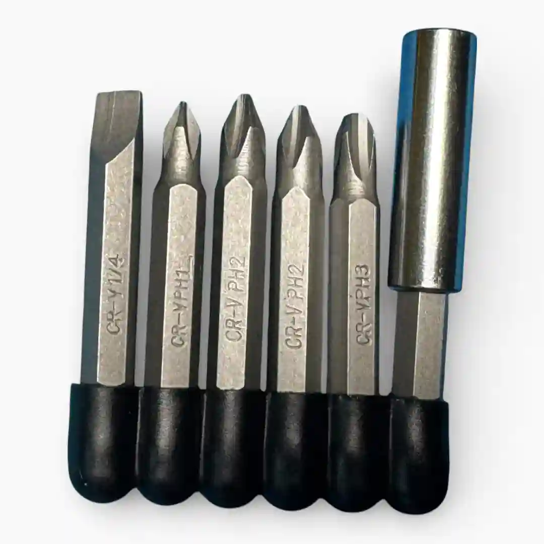 Juego de 5 puntas y 1 extensión magnética hexagonal.