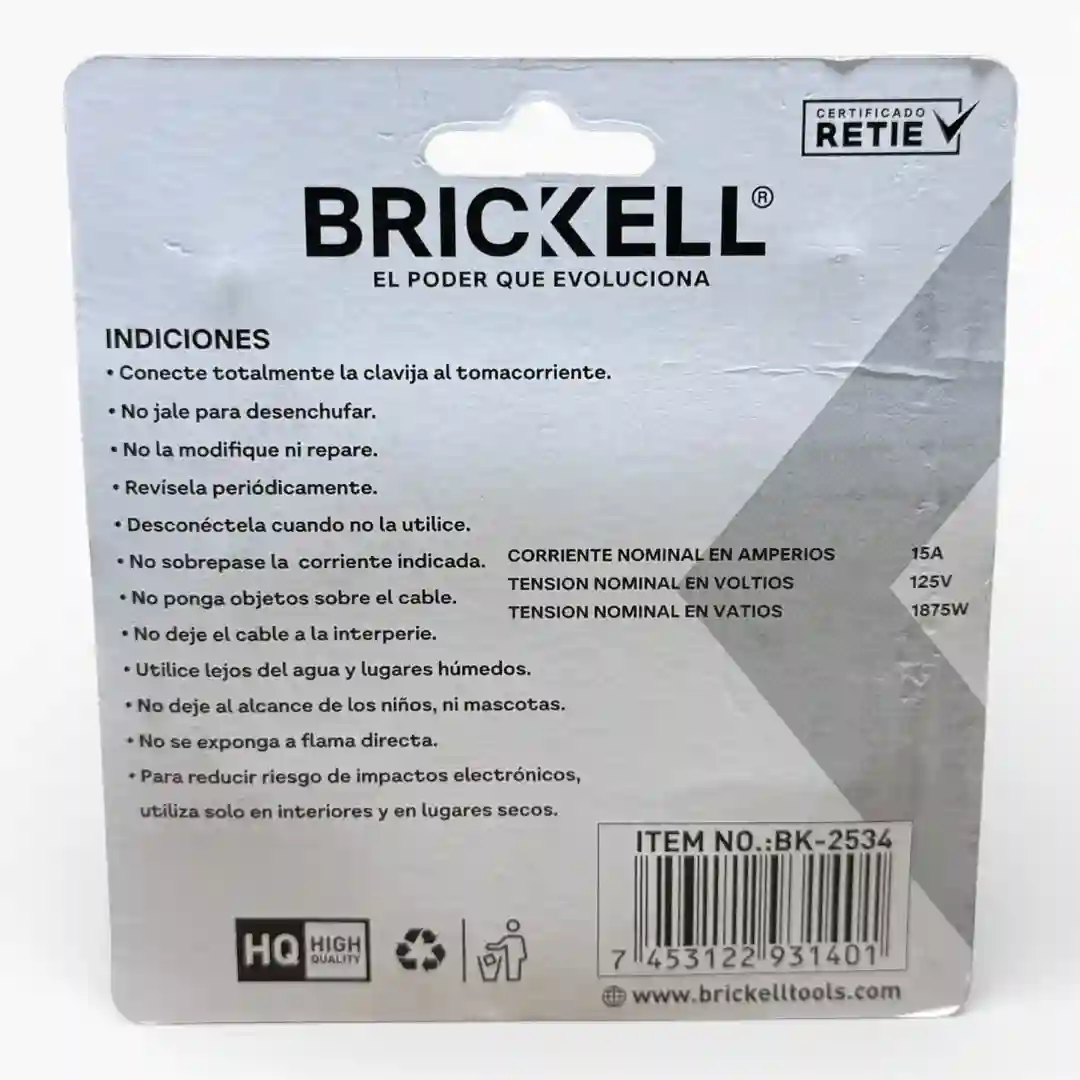 Adaptador de enchufe a tierra de alta calidad diseñado para el uso industrial y doméstico exigente. Este dispositivo, identificado como el modelo BK-2534 de la marca Brickell, permite la conexión de hasta tres dispositivos de forma simultánea, optimizando el espacio y garantizando una conexión segura. Presenta un acabado en color gris, construcción robusta y cumple con normativas de seguridad técnica para un rendimiento superior en interiores.