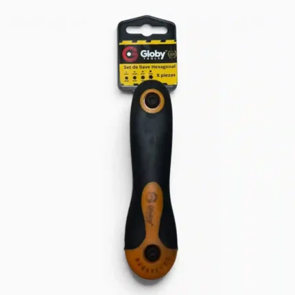 Juego de llaves hexagonales tipo navaja de la marca Globy Tools, diseñado para ofrecer una solución compacta, portátil y de alta resistencia. Este set integra ocho piezas de diferentes dimensiones en un solo cuerpo ergonómico, permitiendo realizar ajustes con precisión y comodidad en diversos trabajos de mantenimiento y reparación.